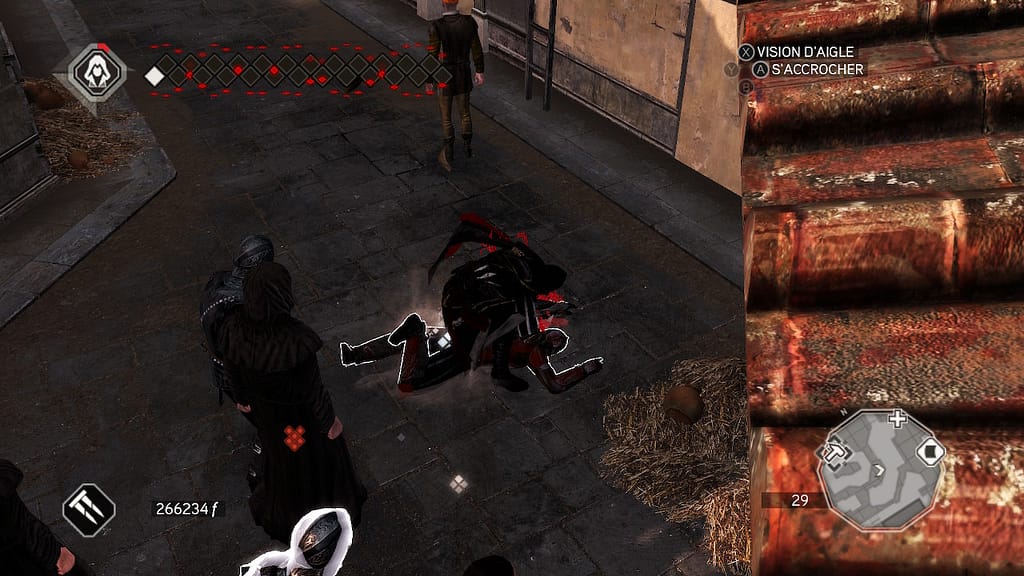 Mais malheureusement, les graphismes ne font pas tout et il y a quelque chose qui m’a pas mal dérangée, en particulier dans Assassin’s Creed II : la maniabilité d’Ezio et de Desmond. Que ce soit au niveau de l’escalade, durant les courses poursuites ou pendant les combats, le personnage pouvait aussi bien tomber d’un mur, glisser dans le vide ou encore tuer le mauvais ennemi quand je lui indiquais une action à réaliser. Heureusement que cela n’arrivait pas sans arrêt et que c’était moins présent dans Brotherhood et Revelations, car ça avait le don de m’agacer.