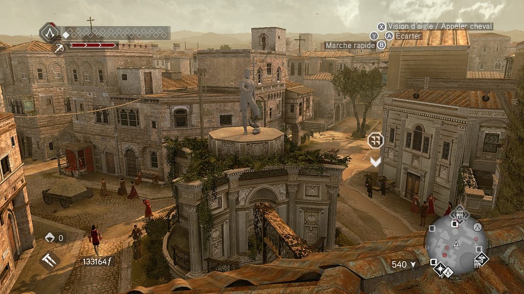 Les moment d’exploration nous emmènent à Florence et Constantinople, en passant par Venise ou encore Rome. Ce sont des zones vraiment vastes avec de nombreux objets à collecter et points d’observation à synchroniser. J’ai adoré passer du temps dans les rues de ces villes pour explorer et admirer les paysages tout en profitant de l’OST (qui est juste excellente) en fond !