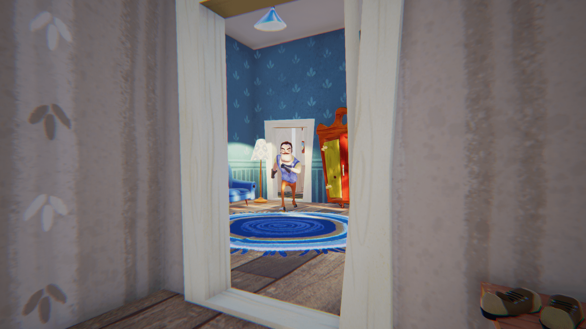 Dans ce jeu d’horreur-infiltration, vous incarnez un jeune garçon dont l’objectif est de découvrir le secret de son voisin sans se faire repérer. Lâché sans aucune indication, le joueur doit trouver tous les moyens possibles et imaginables pour récupérer une clé qui devrait le mener au secret de notre antagoniste. Votre imagination est la seule limite puisque dans Hello Neighbor, vous pourrez prendre n’importe quels objets, les lancer, les empiler… Jusque là, rien d’exceptionnel.