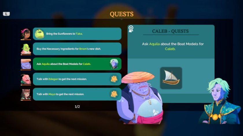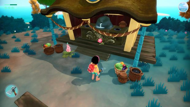 Le gameplay est d’une grande simplicité et propose trois mécaniques de principales : la navigation maritime, l’exploration à pieds et l’aménagement. L’objectif du joueur est d’explorer les différentes îles de Mara pour réaliser des missions et acquérir de nouvelles recettes et de nouveaux plans de construction nécessaires à l’histoire principale ou au développement de l’île. Malgré l’apparence d’un monde ouvert, le jeu nous guide et j’ai ressenti un cruel manque de liberté. En effet, les développeurs ont voulu augmenter la durée de vie de Summer in Mara avec un beaucoup de quêtes fedex (sans intérêt scénaristique) qui nous font faire un certain nombre d’aller-retours entre les différents lieux. Clôturer l’aventure demandera donc une trentaine d’heures, mais cela peut évidemment varier en fonction des joueurs.